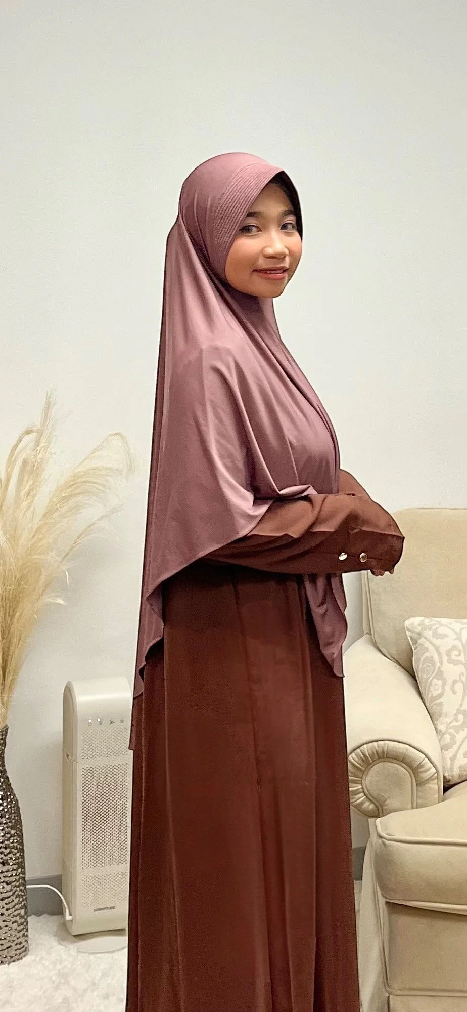 Introducing the Tranquil Bergo — your go to hijab for everyday grace. Designed with effortless flow and calming tones, it's perfect for both prayer and daily wear. Experience the peace in every layer.